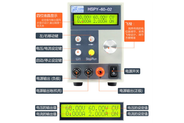 HSPY-可调直流稳压电源系列产品 CPU实时跟踪/低温漂/智能保护/高精度/高分辨率 恒流/恒压、恒功率、电能计算、特殊应用 HSPY程控直流稳压电源,可订制,可集成,可应用于实验室、学校、科研机构、企业 长时间满载工作,高精度,高稳定性,低温漂 液晶四位显示电压电流,CPU实时跟踪,RS485通讯或RS232/标准MODBUS协议程控设计