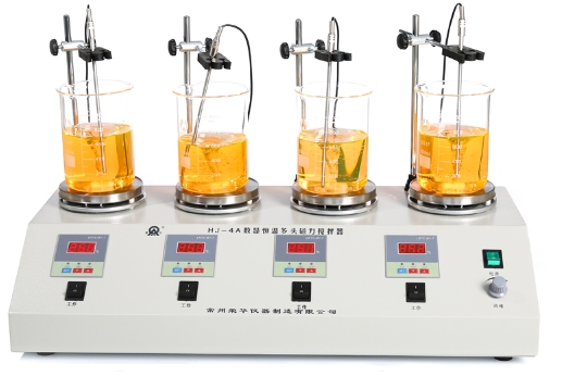 荣华HJ-4A数显恒温四头磁力搅拌器是一款实验室多功能工具,支持四个独立的搅拌操作,操作简便,无级调速,适用于小体积样品的试验,提供精密稳定的搅拌。该磁力搅拌器满足现代石油、化工、环保、生化、实验分析、教育科研等多个领域的需求。规格参数包括最大搅拌量为1000mL*4,搅拌速度可达2400rpm,工作盘尺寸为Φ125*4,外形尺寸适中,支持数显控温,是实验室工作的便捷助手。 HJ-4A磁力搅拌器操作简便,无级调速,能在较广的速度范围内对液体溶液进行精密稳定的搅拌,特别适合小体积样品的试验。磁力搅拌器可以分为不加热型、加热型、恒温型三类,有的机型增设了双向、多头搅拌功能。它是现代石油、化工、环保、生化、实验分析、教育科研的所需称心工具。
