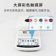 青岛拓科 MS101 卤素水分仪是一款功能强大的水分测定仪器,具备彩色TFT大屏幕触摸屏,适用于多个领域,包括塑胶、化工、食品、粮食、饲料、种子、菜籽、茶叶、纺织、农林、造纸、橡胶等。它具有多种特性,如高精度的水分测定、快速升温、可靠的数据采集、内置通讯接口等。具备广泛的测量范围和灵活的参数调整,可满足不同样品的测试需求。该仪器的便捷性、准确性和可靠性使其成为各种行业生产和实验过程中不可或缺的工具。 MS105卤素水分仪采用彩色 TFT大屏幕触摸屏,可广泛应用于一众需要快速测定水分的行业,如塑胶、化工、食品(鱼糜、脱水蔬菜、肉类和水产加工、面条、面粉、饼干、月饼等)、粮食、饲料、种子、菜籽、茶叶以及纺织、农林、造纸、橡胶、纺织等行业中的生产过与实验过程中。 仪器特性 ※彩色TFT大屏幕触摸屏,提供丰富的称量及水分显示信息,方便读取。 ※可对重量、温度、时钟校准,具有手动,定时,自动测量模式,加热结束蜂鸣器提示。 ※采用高质量卤素灯,升温迅速,加热均匀,样品测试快速,一般样品只需几分钟即可完成测定。 ※采用高精度隔热式传感器,采集数据、温度可靠,可有效保证样品数据真实准确。 ※内置 R232输出接口,可连接计算机,打印机等外部设备。