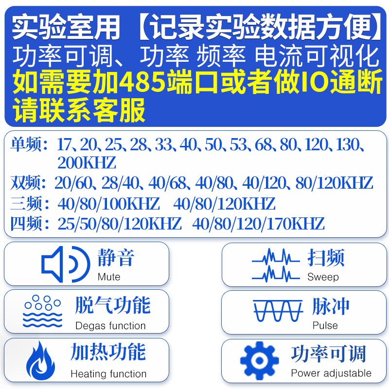 1.型号:YL0810-4080120170(数码按键款/四频可调/底振式) 2.内槽尺寸:长300mm*宽240mm*高150 mm; 3.外型尺寸:长325mm*宽265mm*高330 mm; 4.超声波额定功率:0-400W(安装8个50W振头)加振款(10%-100%可调) 5.超声波额定频率:40/80/120/170kHz 6.加热额定功率:600W 7.温度控制:数码显示控制(常温-80°C可设置) 8.时间控制:数码显示控制,精确到秒(1-9999秒可设置) 9.容量约:10L(4分排水阀) 10.清洗机内槽采用T1.5mm厚优质不锈钢材质冲压成形、无缝焊接,外壳采用防指纹不锈钢板包装,美观耐用,整机304不锈钢(包括内槽、壳体、阀体、管路); 11.电源要求:AC220V 50HZ 12.标配不锈钢清洗篮、不锈钢防尘盖、电源线等等 百合皂苷成分借助超声波清洗机加速提取获得率 超声波清洗机利用在液体媒介的高频振动产生的次级效应,如热效应、乳化、扩散、击碎、化学效应、生物效应、凝聚效应等,加速植物有效成分在溶剂中的扩散释放,促进植物有效成分充分与溶剂混合,以便于提取。这是超声波清洗机能在植物系中加速提取有效成分的主要利用原理,同样百合皂苷成分的提取应用也是基于此原理的应用。 根据资料记录的一项研究中,通过正交试验优化了百合皂苷的提取工艺,发现**提取工艺为加入1倍量的70%乙醇,提取3小时,得到的百合皂苷平均提取率为1.57%。而在另一项研究中,使用超声波辅助回流提取法的**工艺为:温度90℃、乙醇浓度70%、提取时间25分钟、固液比1:30、超声提取功率105W,得到的百合皂苷提取率为2.33%,侧面表明了超声波辅助提取法的提取率和稳定性、重复性都优于传统的水浴回流提取法。 超声波提取优势 效率高 超声波清洗机通过高频声波产生的空化效应,能够迅速破碎细胞壁,加速细胞内有效成分的释放,从而缩减整体溶出时间提高提取率。 节省时间 与传统的提取方法相比,超声波清洗机可以大大缩短提取时间,因为超声波的机械作用加速了物质的释放和溶解过程的有效成分进入溶剂,而且有利于溶剂渗入植物组织细胞中,增加有效成分在溶剂中的溶解度,缩短提取时间、提高提取率。 温和的处理条件 超声波清洗机可以在不同的温度和pH环境条件下工作,有助于优化提取条件。超声提取技术能避免高温高压对有效成分的破坏,但它对容器壁的厚薄及容器放置位置要求较高,否则会影响植物成分浸出效果。 节能环保 超声波清洗机在提取过程中能耗较低,因为它减少了对高温或化学试剂的依赖,同时也减少了提取所需的溶剂用量,是一种新型的环保植物提取技术。 超声波清洗机提取法与其他传统的提取方法相比较,在时间、提取率都有着独一档的优势,能提高有效成分的溶出速度和溶出次数、缩短提取时间,节省溶剂的消耗、并且提取率高。但目前较多在实验室小范围的应用,但随着技术进步,推动该技术在天然产物提取领域的工业应用和发展是可以实现的。 用户评论 产品评分 目前评分共0人 产品质量