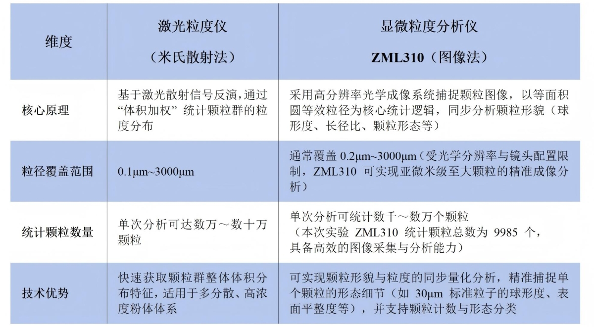 梓梦-显微粒度分析仪与激光粒度仪:粒度分析核心数据对比
