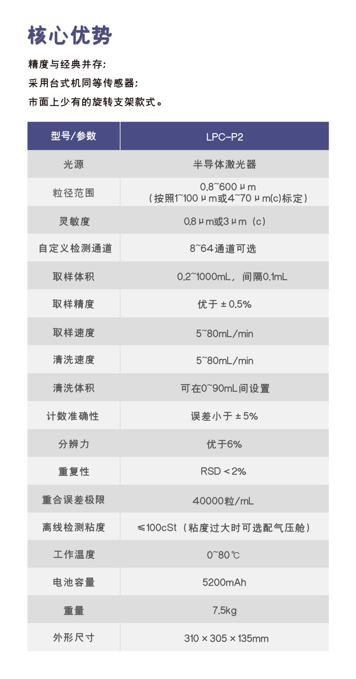 LPC-P2便携式油液颗粒计数器是依据GB/T 18854-2002(ISO11171-1999)等国家及国际标准研制的专门用于油液中污染度等级检测的仪器。适用于液压油、润滑油、岩页油、变压器油(绝缘油)、汽轮机油(透平油)、齿轮油、发动机油、航空煤油、水基液压油、磷酸酯油等油液进行现场、实验室的污染度检测。也可安装在各种液压传动、滤油机、清洗机、检测试验台等系统上,实现对系统油液清洁度在线检测。可广泛应用于航空航天、电力、石油、化工、交通、港口、冶金、机械、汽车制造等领域。